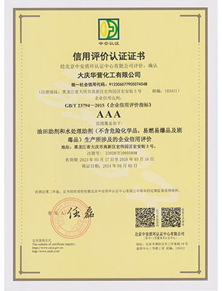 大慶華營(yíng)化工有限公司成立于2006年7月10日,注冊(cè)資金3300萬(wàn)元,公司類型為有限責(zé)任公司。位于大慶高新技術(shù)產(chǎn)業(yè)開(kāi)發(fā)區(qū)宏偉園區(qū),是一家集油田助劑產(chǎn)品的研發(fā)、生產(chǎn)、銷售和技術(shù)服務(wù)為一體的現(xiàn)代化高新技術(shù)企業(yè)。公司注重科技創(chuàng)新,公司擁有18項(xiàng)自主知識(shí)產(chǎn)權(quán)。企業(yè)承擔(dān)過(guò)國(guó)家火炬計(jì)劃重點(diǎn)項(xiàng)目、國(guó)家科技型中小企業(yè)創(chuàng)新項(xiàng)目等,2011年被科技部火炬高新技術(shù)產(chǎn)業(yè)開(kāi)發(fā)中心評(píng)為國(guó)家火炬計(jì)劃重點(diǎn)高新技術(shù)企業(yè)。公司十余種產(chǎn)品獲得中國(guó)石油天然氣集團(tuán)公司產(chǎn)品質(zhì)量認(rèn)可證書,其中粘穩(wěn)型驅(qū)油劑獲國(guó)家火炬計(jì)劃重點(diǎn)項(xiàng)目證書。公司憑借多年對(duì)大慶油田及周邊油田地質(zhì)情況的研究,可針對(duì)各油田地層特點(diǎn)調(diào)整產(chǎn)品的配方,更好地發(fā)揮各類油田助劑的性能。